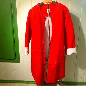 Luii Faux Suede Button Down Jacket LARGE - Red Orange Mandarin Collar