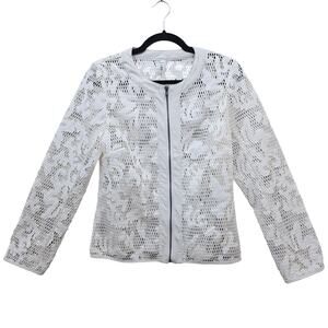 Luii Full Zip Shirt Jacket Shacket Womens Small White See Through Mesh Floral Luxury Coquette Bohemian