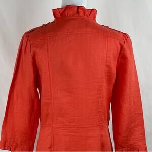Luii Orange Pure Linen Ruffle Coastal Grandma Romantic Jacket NWOT Size S