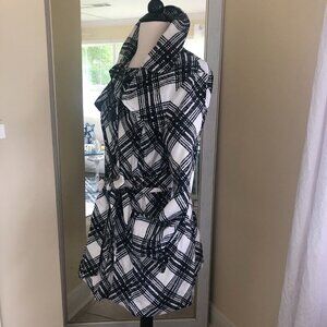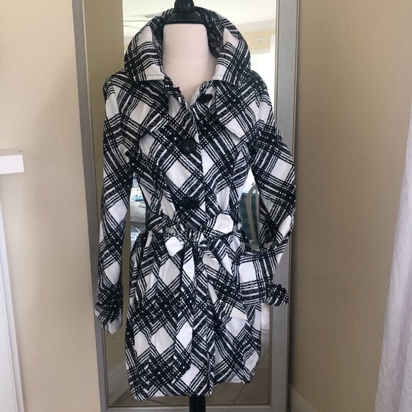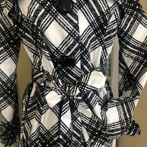 Luii Short Trench Coat Jacket Black White Plaid Size Large