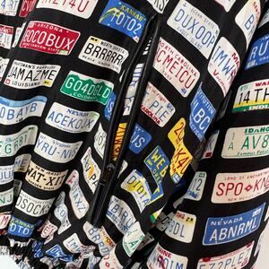 This eye-catching jacket features a unique license plate design that's sure to turn heads. Perfect for adding a vintage touch to any outfit.