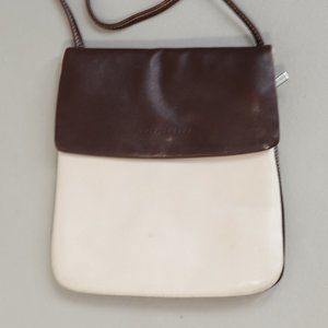 Luis Esteve Crossbody Handbag Womens Small Cream Brown Leather Lined Pockets