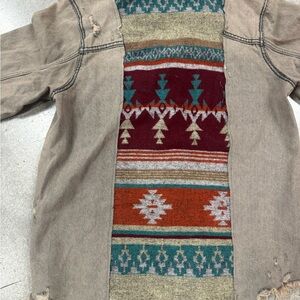 I am selling a size M long sleeve western Indio shirt, which is one of my first launched items. This shirt is made from 100% polyester and a 100% Zara denim jacket. I hope you like my brand. Thank you.