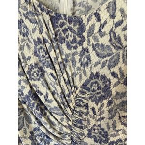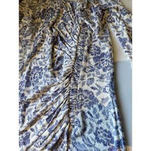 Luisa Beccaria dress sz 42 front is shirred periewinkly blue purple white all over print zipper at back long sleeves Made in Italy