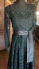 Gorgeous vintage Downton Abbey styled black lace long sleeve cocktail dress made in Italy spaghetti strap lining underneath back zipper hook closure slightly pleated long sleeves black belt (minor thread loose under left arm) otherwise great preloved condition smoke/pet free