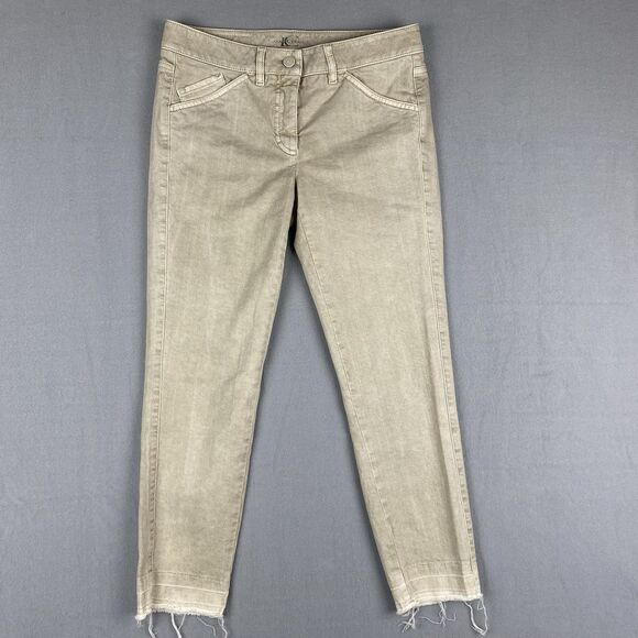 Luisa Cerano Cream Tan Denim Drop Hem Frayed Ankle Jeans Women Size 6 German
