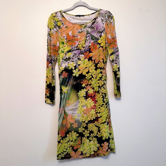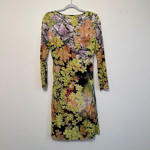 Luisa Cerano Dress Colorful Bright Floral Long Sleeve Shift Size Small Like New