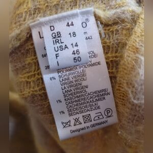 Luisa Cerano Mohair Blend Cardigan 14 Fuzzy Snap Button Bow Neck Tan Yellow