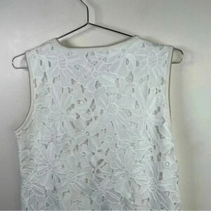 Luisa Cerano White Floral Eyelet Lace Sleeveless Sheath Dress