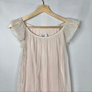 Luisa Ricci Light Pink Smocked Bottom Silk Polka Dot Short Sleeve Blouse S