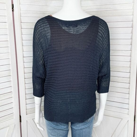 Luisa Ricci Open Weave Boat Neck Sweater Blue Small Dolman Sleeve Mesh Net