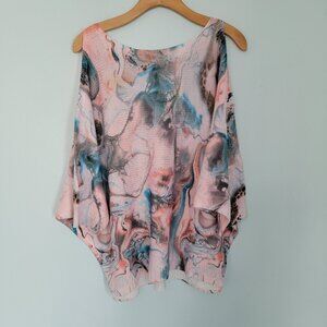 Luisa Ricci Italian Watercolor Pastels Open Shoulders Lightweight Sweater Sz L