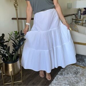 Luisa Spagnoli Vtg White Platead A Line Side Zip Maxi Skirt Made Italy Unlined14