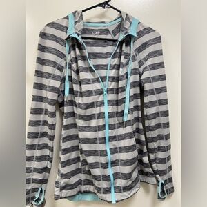 Luka athletic top jacket. Front Zipper. Grey & white striped. Size medium.