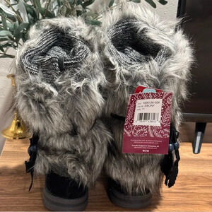Lukees By Muk Luks Sigrid Leela Too 11 Boots Faux Fur Knit Cuff Braided Tassels