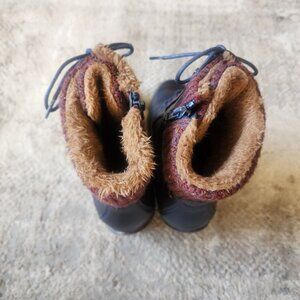 Lukees by Muk Luks Women Sz 7 Lacy Lori Navy Blue Combat Boot Knit Cuff Side Zip