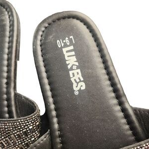Lukees by MukLuks Sandals Womens Size L 9 10 Black Sequin Flat Between Toes