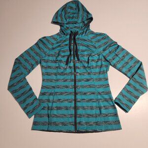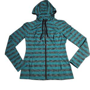 Lukka Hoodie Running Activewear Green Gray Striped Full Zip Drawstring Womens