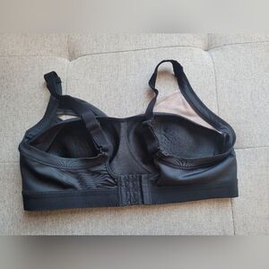 Super cool and not boring or basic sports Bra! Rose gold pink with black, assymetrical structure. Fit shown in photo. Excellent like new condition. Size large.