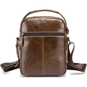 💫 Lukzijaes Leather Genuine Men Brown Small Lightweight Sling Messenger Bag
