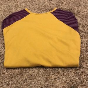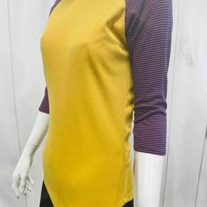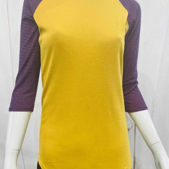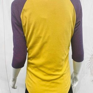 NWT! Adorable yellow ribbed Randy tee with navy and pink striped 3/4 length sleeves. Crew neck. Size medium.