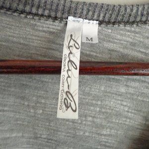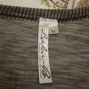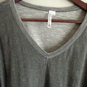 Lula B V-Neck Hi-Lo Heather Burn Out Tunic M Short Raglan Sleeves