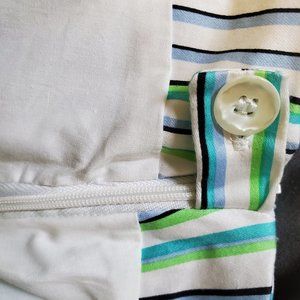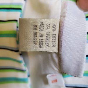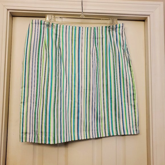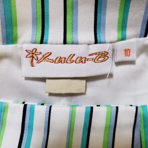 Lula B skirt with vertical stripes. Fully lined. Size 10. Side zipper and button closure. 95% cotton/5 spandex