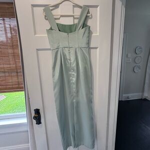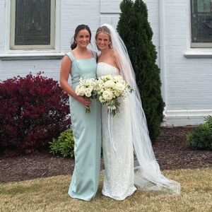 Worn once for a wedding! The only alteration that was made is the straps have been shortened but believe me the straps were so long! The gown could use a dry clean but I’m happy to run it through the washing machine if you request after purchase!