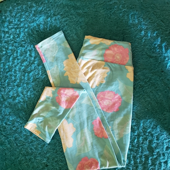 Lula roe leggings super cute.. mint with pink flowers