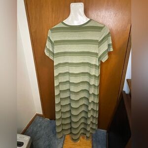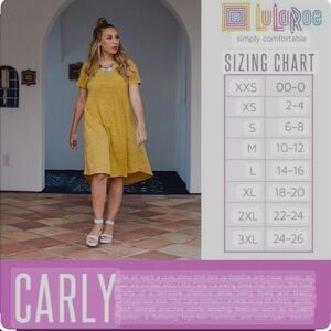 Gently used (like new condition) Lula Roe Carley Dress. This dress is very generous in size. I typically wear a medium and a xs in a Carly fits me perfect.