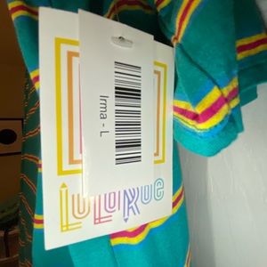 Beautiful teal color with stripes. Tunic style stop, can be worn several different ways. Will fit up to a 18/20 depending on how it’s worn.