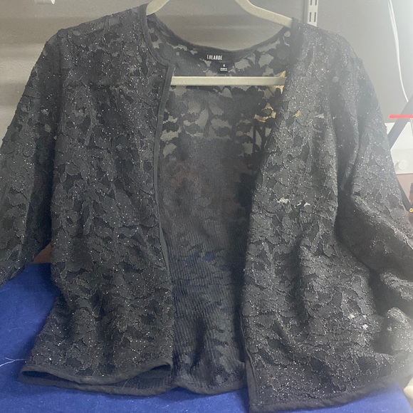 Lacy Little Jacket. Never been worn. Tag fell off. It would dress up any outfit. Lace has sheen to it.