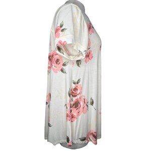 Lula Roe Medium Top short Sleeve Round Neck White Pink Floral Stretch