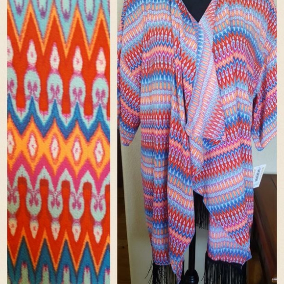 Beautiful multi colored monroe. Colors are vibrant in person. Blues, pinks, oranges! Black fringe.