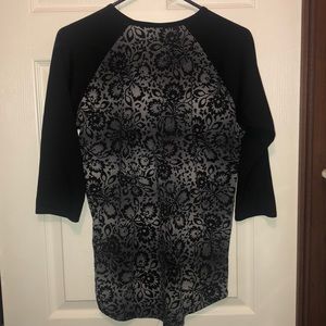 Black and gray Lula Roe Randy, Raglan style, cotton material, floral design, quarter sleeves, Medium
