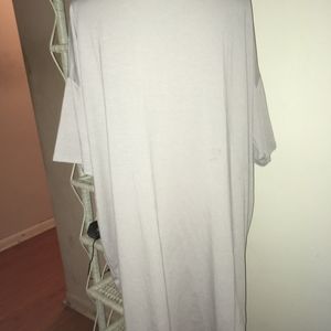 This blouse is used in excellent condition. It is a high low blouse with short sleeves. It says XL on the tag but it will easily fit a 3X.