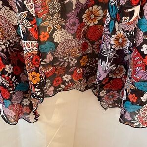 Lula Roe sheer overthrow in a size small, this is oversized and had such a beautiful and bright pattern
