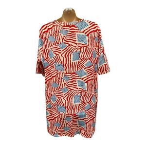 Vibrant top with red and blue American flag patterns. Perfect for the Fourth of July holiday. Lulu La Roe American Flag Red and Blue Tunic Top Size S Casual Comfy Stretch EUC