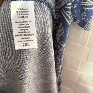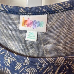 Lula Rosa blue and brown abstract print with front pocket hig low midi dress that flares.