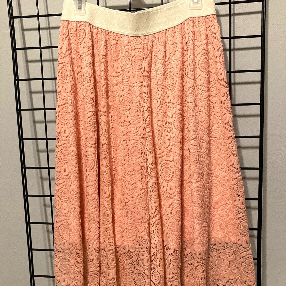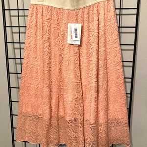 Lulu Rue- Lola style skirt in peach lace overlay. Falls below knee