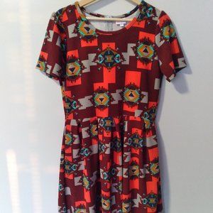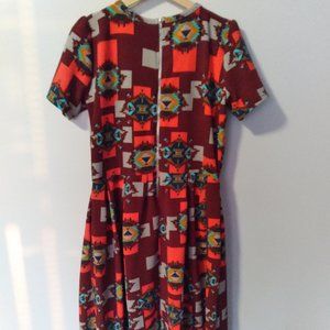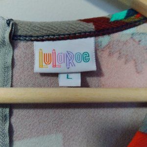 This Lularoe dress is in very good condition in size Large. This dress has a modest length that falls right at the knees and has a stretchy fabric for comfort. Has pockets on the side and a zipper in the back. This dress has no rips, tears, or loose strings.