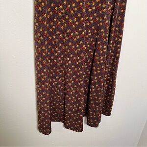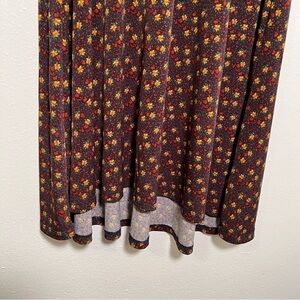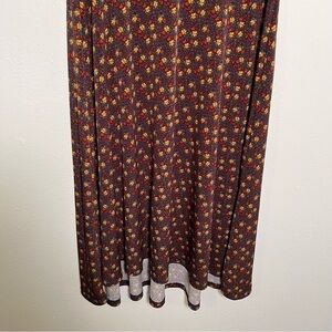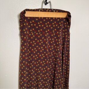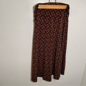 Great condition. Lularoe. Azure a-line skirt. Pull on. Knee length. Dark turquoise green/blue color with yellow and red floral pattern. Slinky material. Size small. Stretch 95% polyester, 5% spandex. Waist 14” Waist to hem 26”/28”. All measurements are approximate and taken lying flat. Smoke free home. No trades, offers welcome.