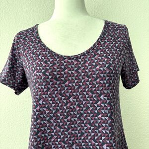 LulaRoe Black Plum Purple Top High Low Short Sleeve SZ XS