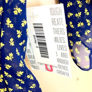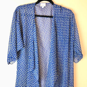 Lightweight, draped front blue & yellow kimono by LulaRoe. Floral print. Size small. Brand new with tags. Polyester.