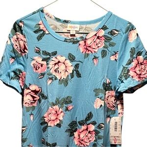 LulaRoe Carly Long/Midi Dress High Low Hem Stretchy Comfortable Light Blue Pink