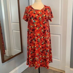 LulaRoe Carly Tee Shirt Dress Orange Floral short sleeved Comfy Size Medium