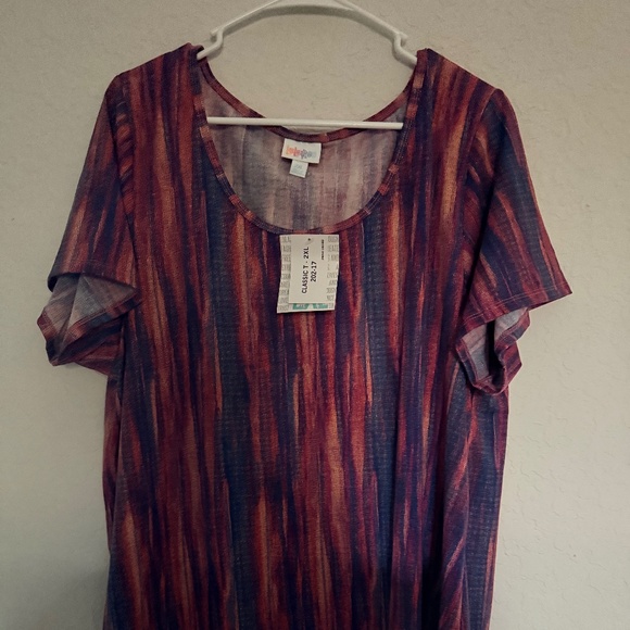 LulaRoe Classic T NWT in a pink and blue striped pattern.