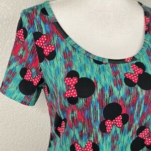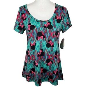 LulaRoe Disney Minnie Mouse Print Green & Black Short Sleeve Top Size XS New!
