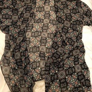 This was worn once. Great to wear over a black dress or a top with shorts. Love it! It is a large, but I normally wear mediums