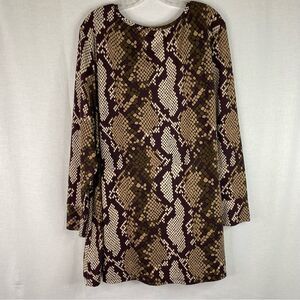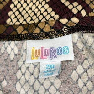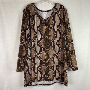 LulaRoe Elizabeth Tunic Women’s 2X Brown Tan Snake Reptile V Neck Long Sleeve